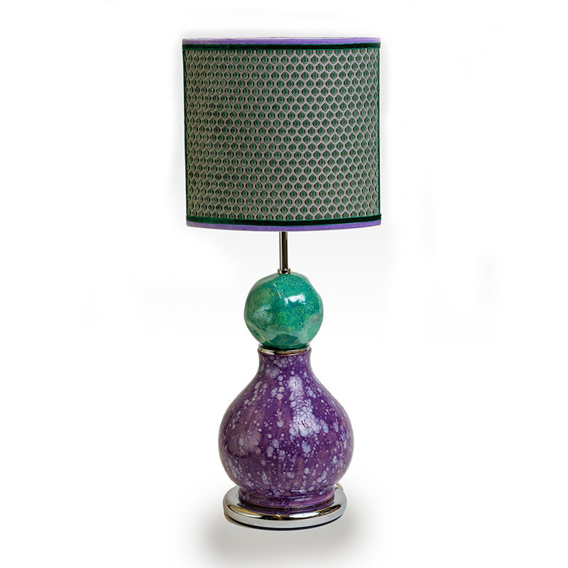 Il paralume è realizzato con un prestigioso tessuto dell’azienda Designers Guild.