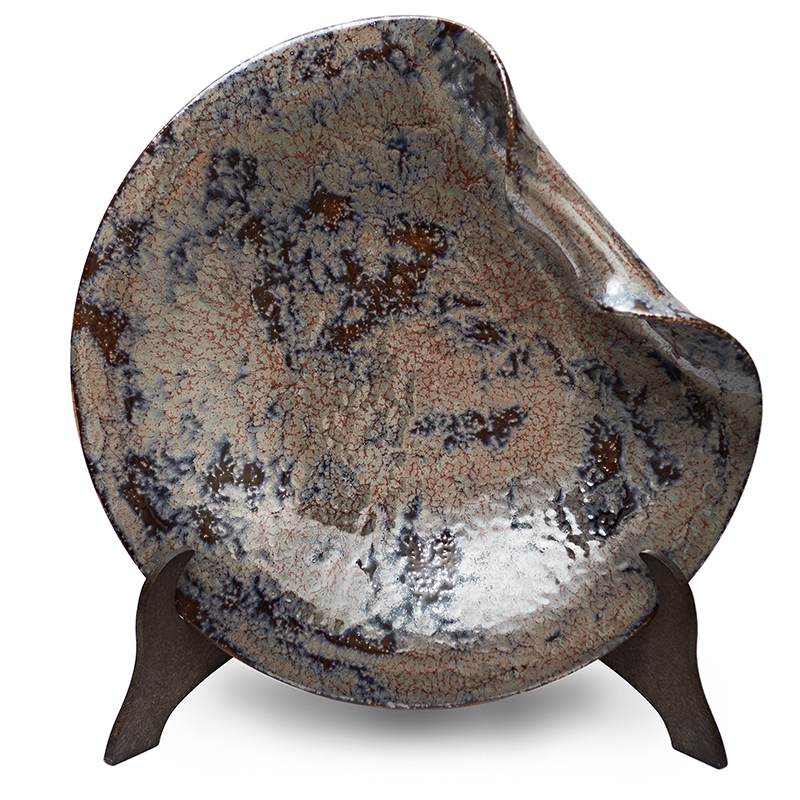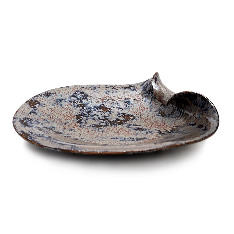 L’oggetto è stato realizzato con lastre in argilla rossa sopra ad uno stampo. In questo piatto la bellezza dello smalto è protagonista, creando una trama sempre originale e un oggetto irripetibile.