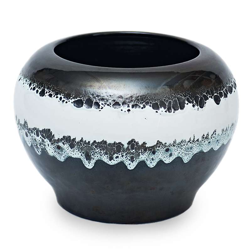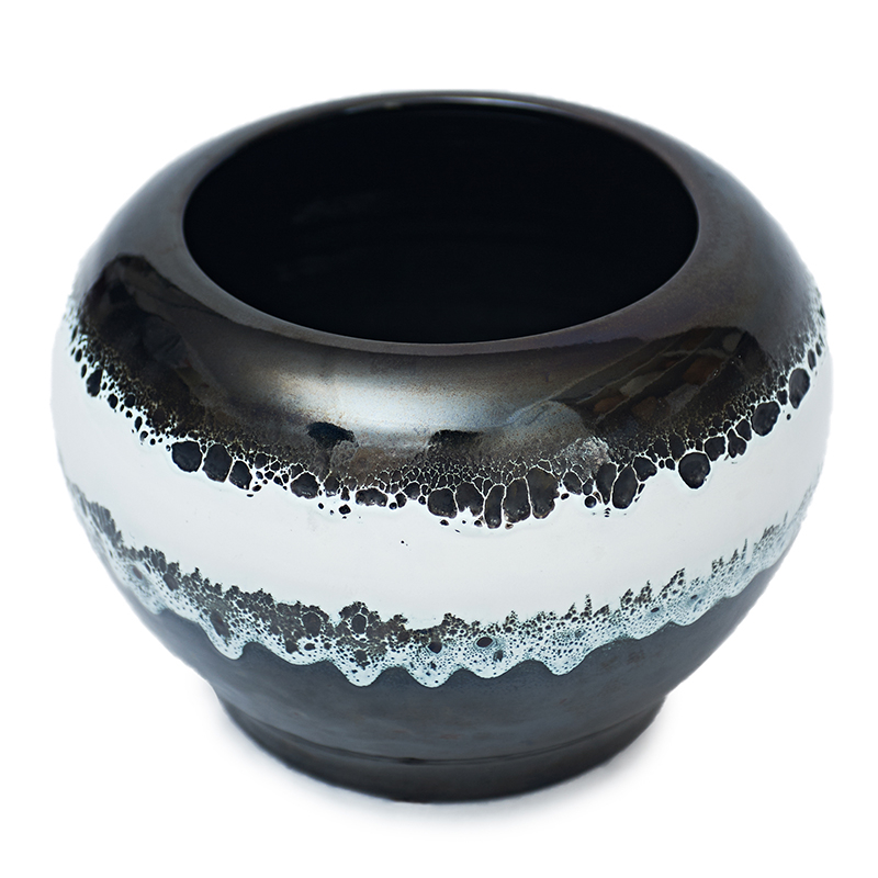 Il vaso è realizzato a mano con tecnica mista e decorato con sovrapposizioni di smalti che non si sposano tra loro